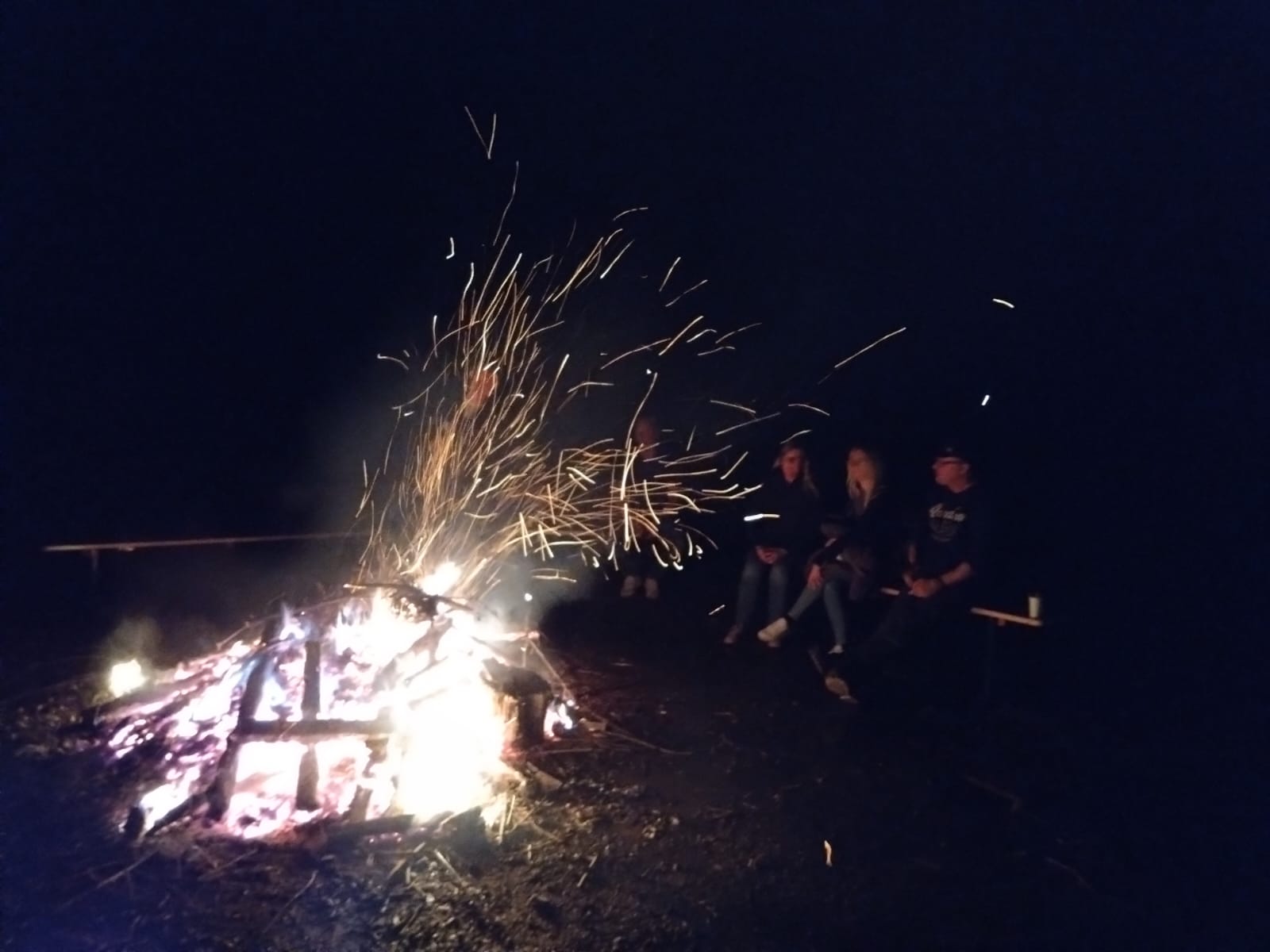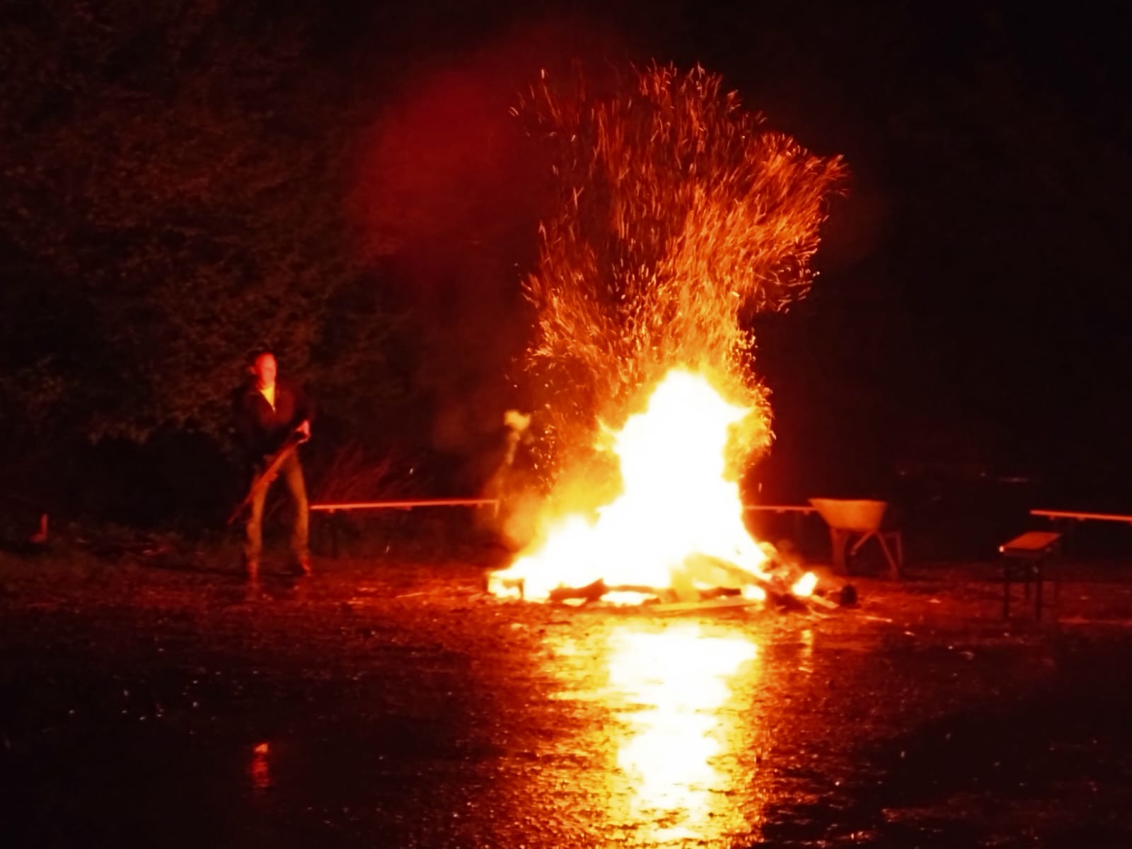 Dieses waren nur die hart gesottenen Gäste beim Osterfeuer. Der Wettergott lies es regnen wie aus Kübeln. Trotz der beschwerlichen Wetterbedingungen bekamen die Mitglieder/innen das Osterfeuern zum brennen. In den Regenpausen gab es dann doch noch ein bisschen Zeit, dass Feuer zu genießen und das ein oder andere Gespräch zu führen, bei einer warmen Grillwurst. Die Ostereiersuch für die Kinder viel wegen des Wetters leider aus. Nächste Jahr wieder. Einen großen Dank an alle die da waren, für euer Durchhaltevermögen!